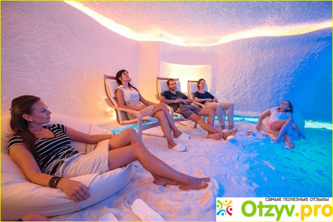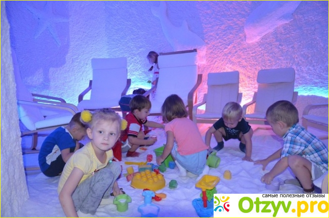 О, это настолько приятно! Процедура реально очень расслабляющая: заходишь, значит, в соляную пещеру. Здесь очень приятная температура, играет ненавязчивая легкая музыка с шумом волн. Свет приглушенный и мягкий. Вы ложитесь на шезлонг и расслабляетесь. При этом полезно очень глубоко дышать. В углу есть небольшая песочница и игрушками для малышей, которые с удовольствием играют с солью вместо песка, тем более там этой соли целое море)).