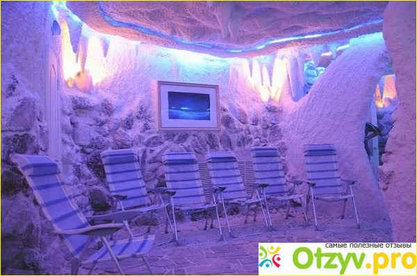 Спелеотерапия представляет собой немедикаментозное лечение на основе искусственно воссозданного микроклимата соляных пещер. Это достигается путем создания низкой влажности, поддержания постоянной температуры воздуха, и распыления в помещении специализированного соляного аэрозоля. Такой воздух очень полезен и совершенно не содержит аллергенов. Для полной имитации среды природных соляных пещер, стены в помещениях также покрывают солью. Для удобства посетителей устанавливают шезлонги, ставят релаксационную музыку. Есть и детский уголок, с маленькой мебелью и игрушками. Часто в соляной пещере находятся и взрослые и дети, и если вы приходите в одиночку и мечтаете порелаксировать лучше взять беруши.