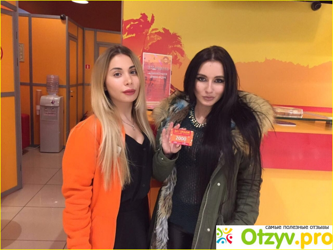 На фото я с картой подарочной картой на 2000 рублей, которая дает скидку на загар 15%, а на косметику 10%. Ее я приобрела для своей лучшей подруги.