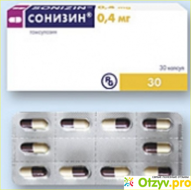 Сонизин представляет собой лекарственное средство, которое эффективно работает в случаях лечения аденомы простаты у мужчин. Основное действующее вещество данного препарата это тамсулозин гидрохлористый. Среди дополнительных компонентов в состав средства входят такие: кальций стеариновокислый, эфир триэтиловый кислоты лимонной, натрия лаурилсульфар, полисорбат, а также другие компоненты.