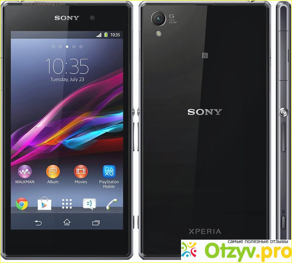 На задней стенке расположен большой объектив камеры и специальный блок сенсоров, для обеспечения наилучшего качества съемки, это лазерная фокусировка и инфракрасный датчик для установки баланса белого. Здесь же находится еще NFC модуль. Также на задней стенке встроена универсальная антенне, предназначенная для обеспечения бесконтактной оплаты или передачи файлов.