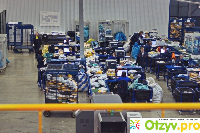 Людской труд имеет здесь очень важное значение. Так как конвейерная система не может быть полноценно использована в силу не стандартности некоторых посылок. В силу этого же в ходу ручное сканирование. Также система позволяет считывая штрих коды очень быстро распределять конверты и пакеты по соответствующим ячейкам. Здесь никогда ничего не валяется в беспорядке. Только точность и аккуратность позволяет действовать без ошибок и максимально четко. Всего существует несколько потоковых линий, по которым происходит разделение на крупные и габаритные посылки, те что идут за границу, а также обычные свертки которым место в городских пунктах.