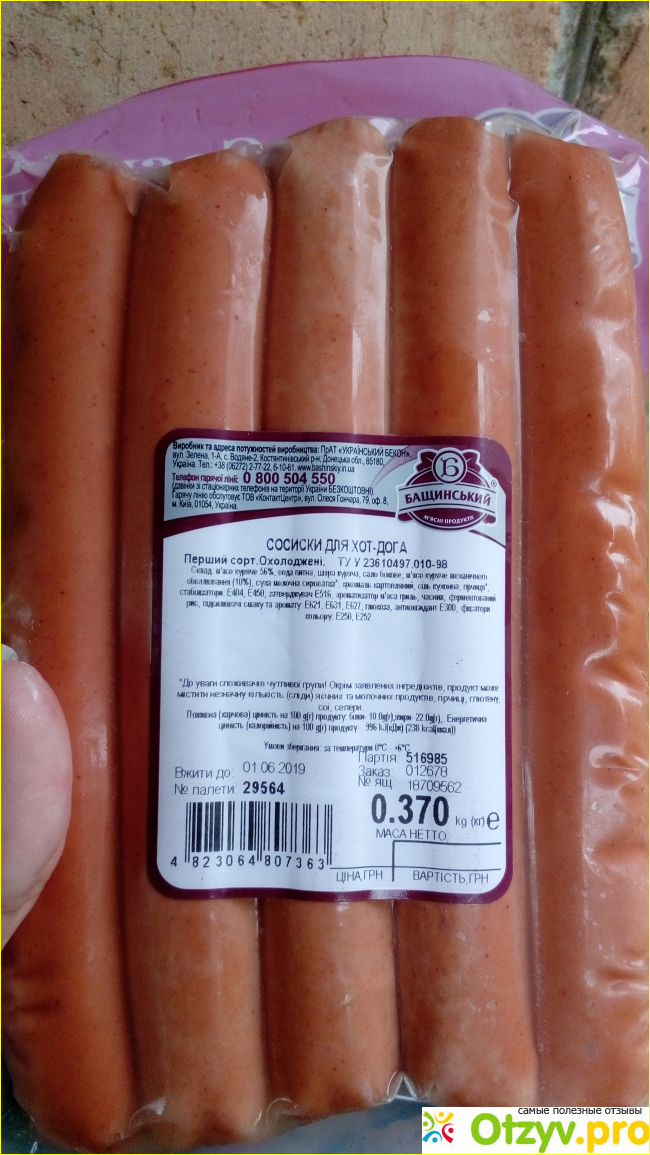 На пачке есть маленькая наклейка, на которой производитель указывает состав сосисок, сроки и условия хранения, информацию о производителе и энергетическую ценность.