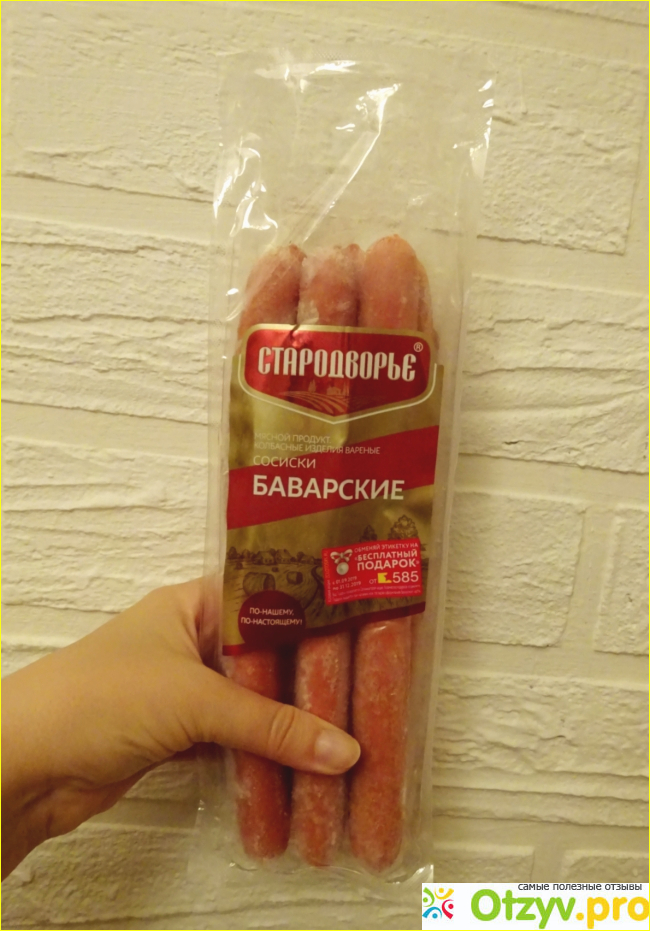 В последнее время я пристрастилась к сосискам и сарделькам, так как это не только очень удобно и быстро, но ещё и вкусно. Эти товара я покупаю в больших супермаркетах, не так давно в одном из них я приобрела сосиски «Баварские» от торговой марки «Стародворье». За упаковку весом 420 грамм я заплатила 100 рублей, это стоимость по акции, полная цена товара составляет около 180 рублей.