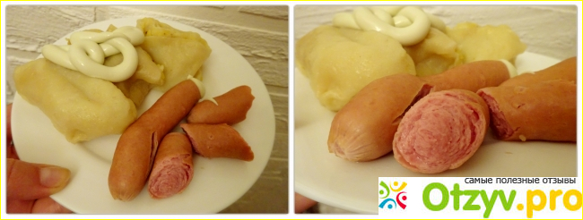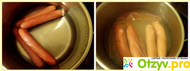 Сосиски «Баварские» достаточно длинные, тонкие, ровные и очень красивые. Они полностью готовы к употреблению, но станут безопаснее и ещё вкуснее, если их отварить или обжарить. Лично мне они больше понравились в обжаренном виде. Готовятся они быстро, плёнка, в которой они находятся, самостоятельно снимается во время варки. В размере продукт практически не меняется, однако цвет становится чуть – чуть посветлее.