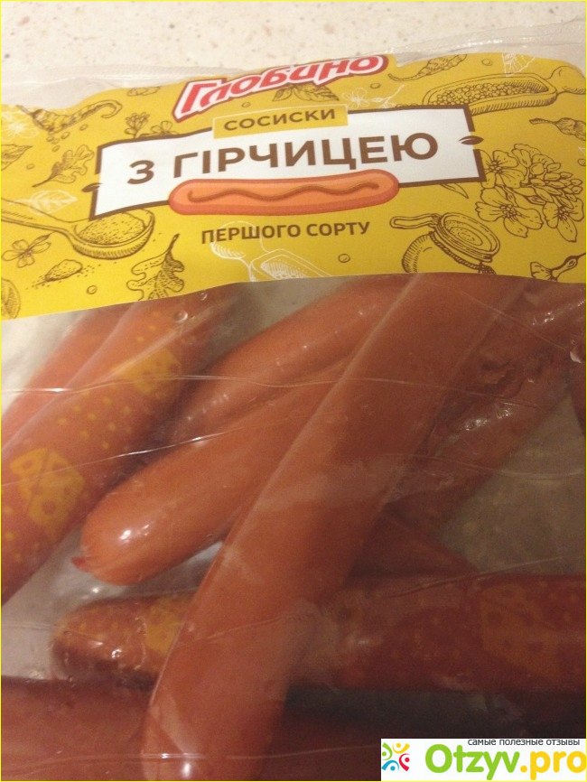 Но иногда хочется сосиску, а не котлетку. Вот и купила, будучи в ТЦ Ашан Сосиски с горчицей ТМ Глобино. Торговая марка не только "на слуху", но и ее продукция довольно любима в моей семье. А вот сосисочки такие увидела в продаже впервые.