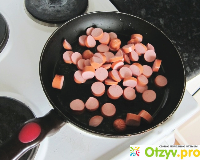 А пока покажу, как аппетитно выгядят эти сосисочки при обжаривании их на сковородке. Мы частенько готовим дома такое незамысловатое блюдо: