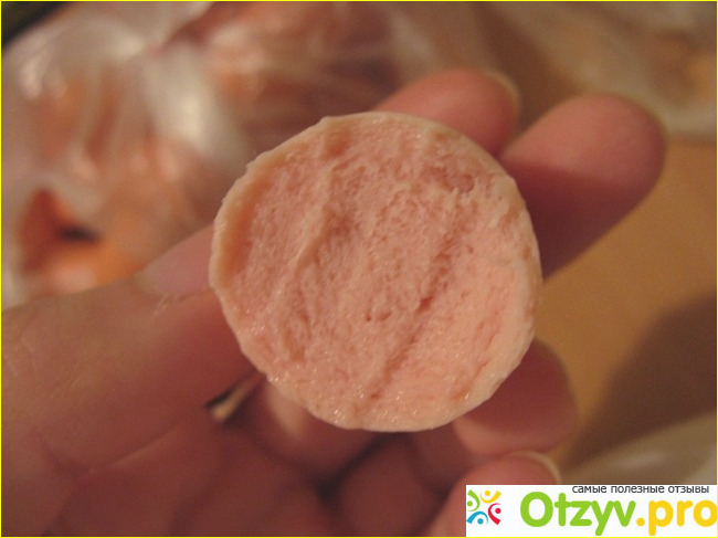 Сосиски эти на ощупь не очень твердые, но и не разлазятся, как будто сделаны из туалетной бумаги. По цвету, конечно, розоватые.