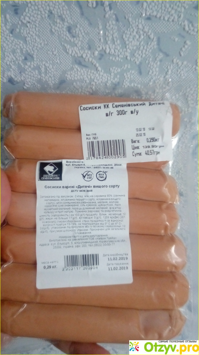 Эти сосиски не из дешёвых, стоимость небольшой упаковки 40,57 грн, в упаковке 7 сосисок.