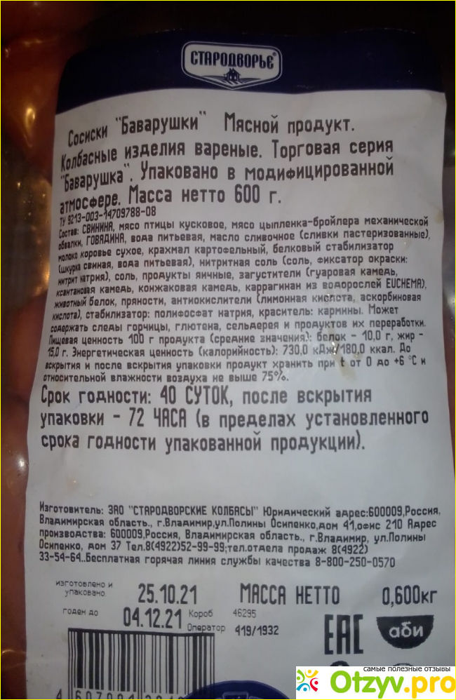 Срок годности немногим более месяца, указано, что это мясной продукт.