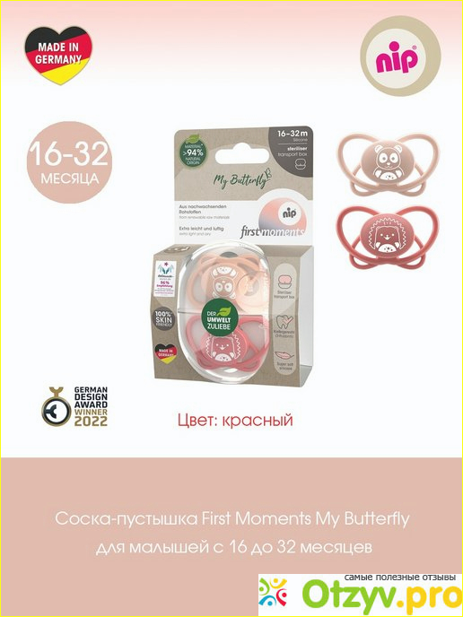 Всем привет! Сегодня хочу оставить свой отзыв о соске-пустышке First Moments My Butterfly немецкого производителя Nip. Эту соску я впервые увидела в нашей детской поликлинике, у дочки моей одноклассницы. Мне понравился её современный дизайн.