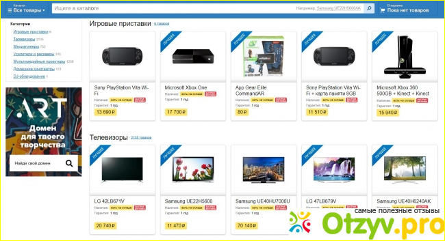 Все представленные товары хорошо каталогизированы, найти любой не представляет никакого труда. Здесь продаются в большом ассортименте телефоны, различная гарнитура к ним, запчасти и аксессуары. Электроника и компьютерная техника представлена здесь также очень обширно. Есть всё от телевизоров до любой аудио и видеотехники, магнитолы, электронные переводчики, электронные книги, банковское оборудование, оборудование для офисов, запчасти, аксессуары и т. д. Большой выбор разнообразных фототоваров, от зеркальных обычных фотоаппаратов, видеокамер, штативов, микрофонов, цифровых фотоальбомов и рамок, объективов, и многого другого. Большой выбор компьютерной техники и запчастей к ним, планшетов, мониторов, любых комплектующих, принтеров, сканеров, многофункциональных устройств, стабилизаторов напряжения, любого программного обеспечения и т. д. Даже имеется раздел, где представлены "необычные гаджеты" вроде магического диско-шара и прочих необычных предметов, и устройств, которые как нельзя лучше подойдут для подарка на какой-нибудь праздник или торжество.