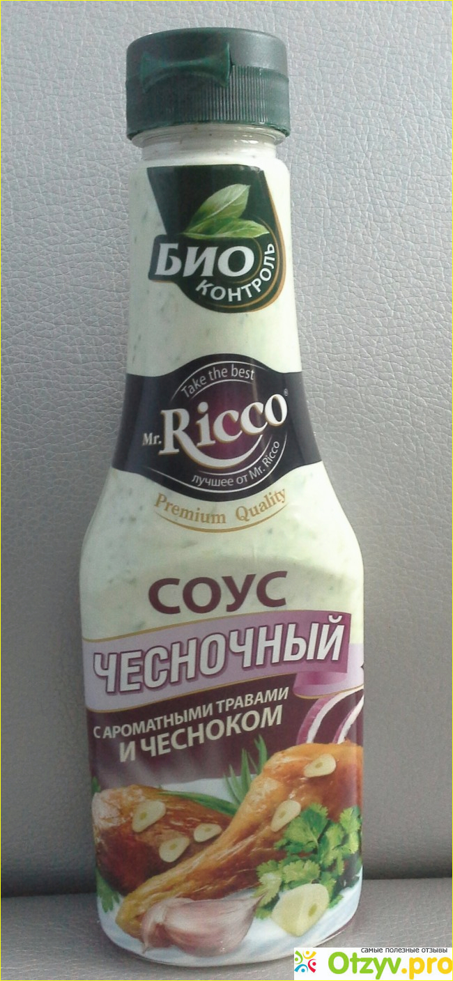 Я часто покупаю различные соусы, чтобы приправлять ими вторые блюда и заправлять салаты. Соус чесночный Mr.Ricco мой любимчик, точнее, любимчик нашей семьи. У него в меру пикантный чесночный вкус и неплохой состав, в котором, кроме чеснока, присутствуют и другие натуральные ингредиенты, такие как подсолнечное масло, яичный желток, семена горчицы и лук весенний.