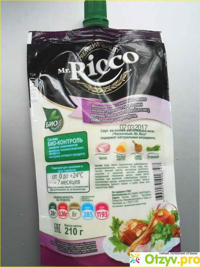 Покупала в магазине кетчуп, а там проходила какая-то акция: продавались в паре кетчуп и чесночный соус Mr.Ricco. Честно сказать, не знаю, что было в нагрузку к чему. Кетчуп мне абсолютно не понравился, а соус очень даже вкусный.
