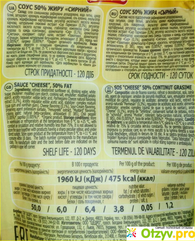 Соус вмеру жирный, его жирность 50%.