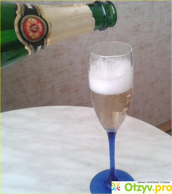 Шампанское, а вернее будет сказать, игристое вино наливается красиво, с пенкой, потом пузырьки долго играют в бокале, радуя и вкусовые рецепторы и зрительные в том числе.