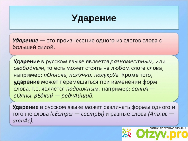 Для нашего языка ударение очень значимо, так как может поменять коренным образом не только произношение одного и того же слова, но и собственно смысл фразы. В среднем ударный гласный звучит в 1,2-2 раза длиннее, чем безударный. Знак ударение акут - этой наклонной палочкой сверху обозначают ударный звук. Существуют словари ударений, которые очень помогут в изучении языка и формировании грамотной речи. Тем, кто озабочен своей речью и знаниями, стоит завести блокнот, в который записывать те слова, что вызвали у вас вопросы. А в дальнейшем их нужно проработать, запомнить и употреблять в контексте.
