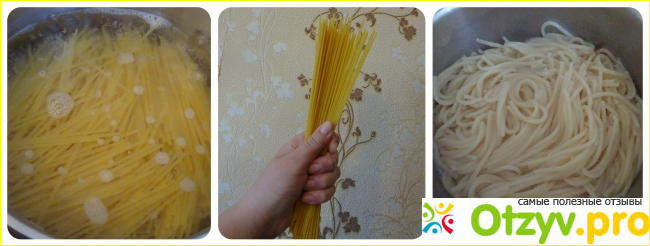 Эти спагетти хороши тем, что переварить или не доварить их достаточно сложно. Кроме того они не нуждаются в перемешивании, так как не слипаются между собой. На каждые 100 грамм макаронных изделий требуется не менее 1 литра воды. В результате мы получаем длинные спагетти красивого цвета, не разваренные, полностью готовые, но в тоже время упругие, сытные, легкие и очень вкусные.