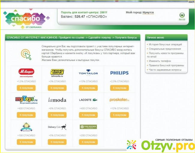 А есть у программы и магазины партнеры, которые начисляют бонусы в 2 раза больше, а то и в 10 раз, об этом как раз таки можно прочитать на форуме спасибо от сбербанка и узнать точные подробности всего этого. Люди на форуме активно общаются друг с другом на счет этой темы, может у кого либо случали какие либо сбои по программе просто так списали бонусы или наоборот не зачислили, все это обсуждается и решается на вопросах сайта, а также можно позвонить бесплатно на горячую линию банка и все в подробностях расспросить и Вам специалисты сбербанка не имеют права отказать, так как все разговоры с операторами записываются.