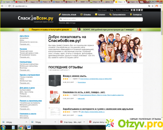 Хочу поделиться с вами опытом работы на сайте СпасибоВсем. ру. Сейчас там действует акция 300 рублей за регистрацию до февраля, и этим они и завлекают людей регистрироваться.