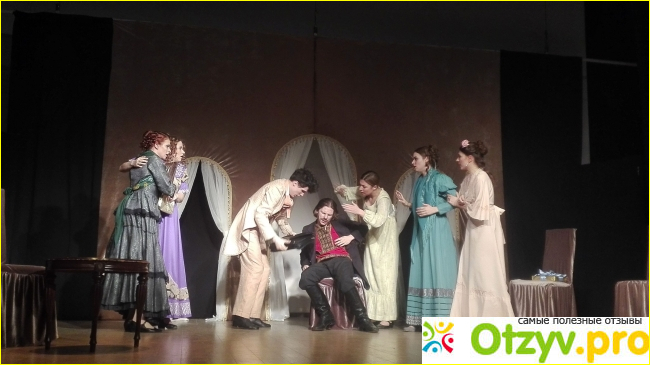 Милый добрый водевиль "Беда от нежного сердца", написанный Владимиром Соллогубом полтора века назад, заинтересовал режиссеров студенческого театра ненавязчивостью, легким юмором и прозрачной, не давящей тяжестью жизненных раздумий моралью. Ведь когда думаешь о наших водевилях (кстати, очень популярный театральный жанр в 19 веке), на ум приходит сравнение с русскими народными сказками, в которых зло и алчность в финале непременно терпят поражение и бывают наказаны (тут я определенно вспоминаю "Морозко", "Василису Прекрасную" и разнообразные фольклорные вариации "Царевен-Лягушек":)). Так и в нашем спектакле в сущности добрый, но незадачливый отпрыск богатого папаши, привезенный в столицу в поисках молодой жены, в результате выбирает честную и скромную Настеньку. Корысть же наказана и остается не у дел. Всё просто, непритязательно и мило.