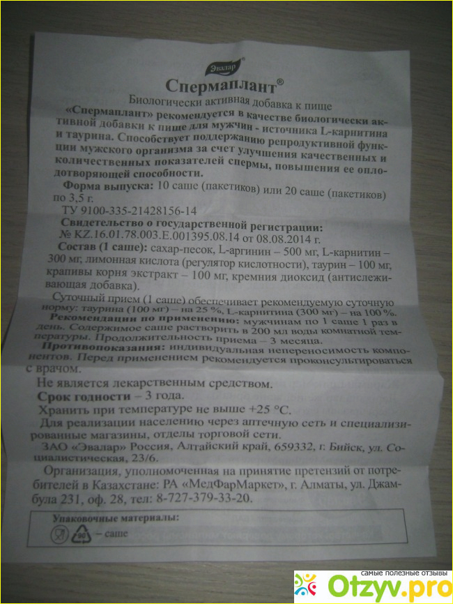 Упаковка 20 пакетиков "СпермаПланта" стоит 436 рублей - так что это удовольствие не из дешевых, но эффективное, способствует поддержанию репродуктивной функции мужского организма.