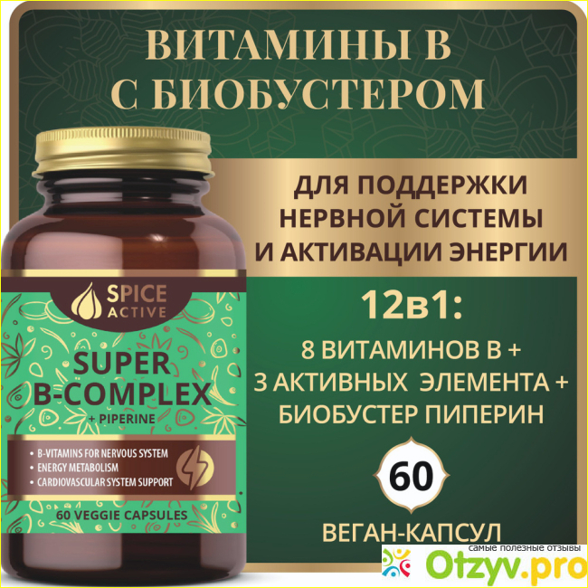 А все потому, что БАД содержит биобустер- пиперин, я прочитала, что он помогает витаминам в составе наиболее эффективно усвоиться и усиливает их действие. Для меня это несомненный плюс. Сейчас благодаря Spice Active ощущаю себя совсем по-другому, нервы укрепились, соответственно и самочувствие тоже стало гораздо лучше. Мне кажется, у меня даже энергии стало больше, работаю быстрее, успеваю по всем своим делам и не чувствую усталость до самого вечера. "Витамины группы В" мне определенно понравились, выражаю производителю свою благодарность