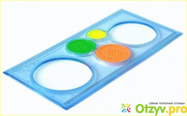 Существуют также дополнительные трафареты в виде различных фигур и линейка-транспортир в виде обычного круга.
