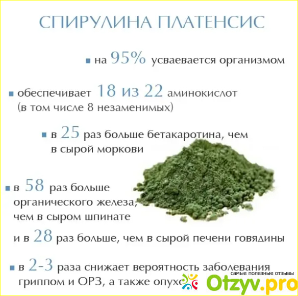 Итак, вкратце перечислю все то полезное, что делает спирулина в организме человека: