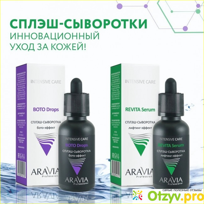 Ею можно пользоваться как самостоятельным продуктом для ухода, так и с целью пролонгации омолаживающих процедур (ботокс, мезотерапия). На данный момент Аравия выпустила две сыворотки - бото и лифтинг эффект.