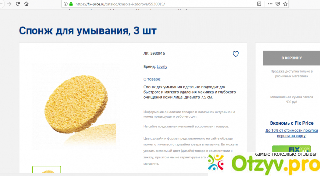 Затем я начала захаживать в магазинчики этой сети и поняла, что там есть много чего стоящего. Главное, правильно выбирать. Сейчас у меня дома достаточно много различных товаров, купленных в Fix Price. В их числе спонж для умывания бренда Lovely. В своем отзыве хочу рассказать вам о нем подробнее.