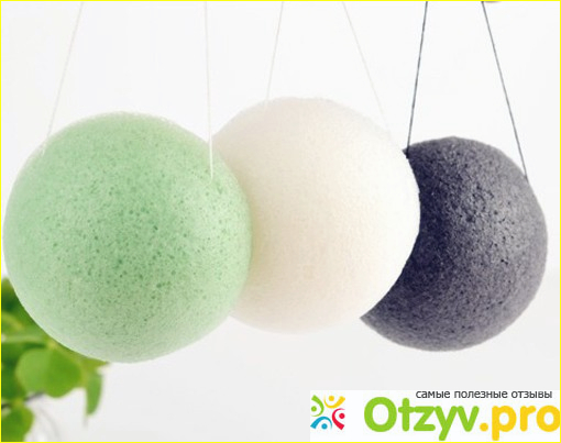 Конняку позволяет очень экономично расходовать уходовые средства. Они дают интенсивную пену. Дерматологам очень нравится этот спонж за счет того, что он очень быстро высыхает и бактерии в нем развиваются очень медленно. Конняку бывают разных цветов, это связано с тем, что производители напитывают их различными лечебными добавками (глина, древесный уголь).