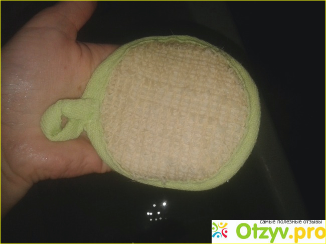 Предусмотрена также специальная петелька, которая позволяет удобно сушить его после применения:Достоинства: натуральный, мягкий, щадящее воздействие