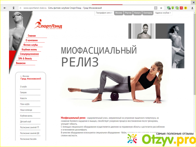 Из многочисленных положительных сторон такого спортивного центра конечно же хотелось отметить то, что есть даже миофасциальный релиз - оздоровительный класс, мне он помог решить очень многие проблемы и заболевания, например, удалось убрать все неприятные ощущения в области ног, поясницы и спины, так же ушел и мой давний остеохондроз в шейном отделе позвоночника, это такой спортивный класс, главным образом направленный на устранение мышечного гипертонуса, так же мне нравится и то, что весь курс программы в таком классе направлен на снижение болевого ощущения в мышцах, тело потом становится более выносливое, подтянутое, так же уходит не нужный тонус с мышечной ткани, такая программа к тому же еще и способствует ускорению процесса восстановления после тренировок, улучшает гибкость. Так же понравилось и то, что удалось в очень скором времени похудеть, то есть я ходила в данный класс, мне сразу же разработали именно для меня посильную программу, так что эффективно скинула 10 килограмм.