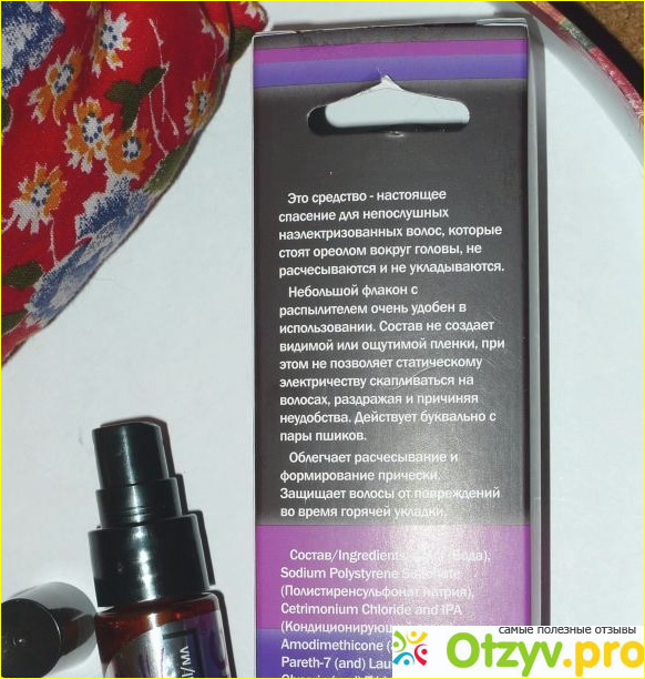 Когда я купила это средство, то оно было запаковано в картонную упаковочку, на которой написана некоторая информация об этом антистатике. Само средство не вызывает липкости и дискомфорта. Также преимуществом такого средства является то, что у него нет никакого неприятного запаха. В составе такого средства нет никаких вредных веществ, поэтому этим средством можно пользоваться на протяжении дня многократно.