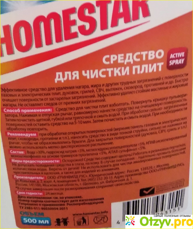 д.) Раньше мне помогал пемолюкс, сейчас он не справляется. Как то раз мы были в гостях у свекрови, и пообщавшись с ней о наболевшем, она посоветовала мне замечательное средство - Спрей для чистки плит Homestar.