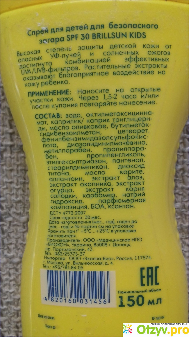 Спрей очень эффективно защищает от солнечных ожогов, пользуюсь таким средством уже два года, и за это время ребенок не разу не получал солнечного ожога.