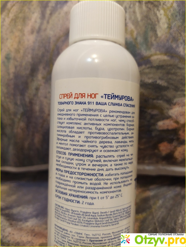 В аптеке посоветовали 911 Спрей для ног «ТЕЙМУРОВА» от запаха пота. Наносила каждое утро на стопу, тщательно растирала между пальцами. Запах ненавязчивый, впитывается быстро, расходуется совсем немного.