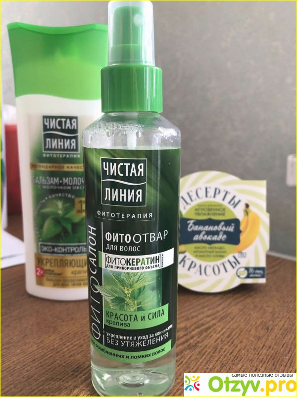 Ухаживающее средство от Чистой линии дарит естественный блеск локонам и обладает антистатическим эффектом. В составе есть активные вещества , питающие и укрепляющие корни и локоны, защищая кончики от сечения. Происходит активация новых волос и пресечение ломкости.