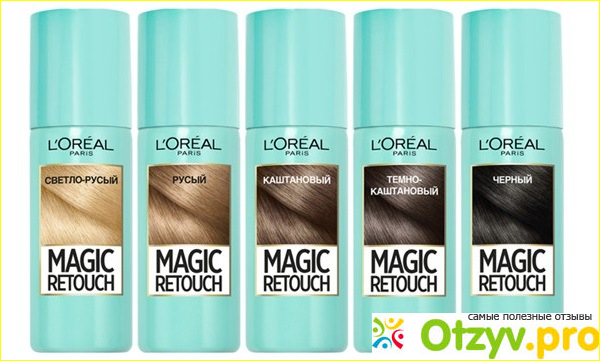 L'Oreal Paris Magic Retouch - это средство, которое позволяет мгновенно маскировать корни. Средство позволяет скрывать седые корни при помощи одного быстрого брызга. Средство доступно в пяти цветах от светлой блондинки до черного, с легкой формулой, которая продержится на волосах до вымывания.