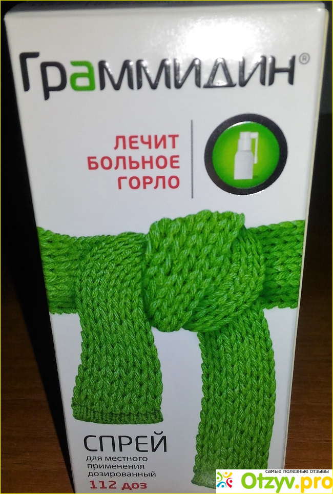 Граммидин мне больше известен в виде пастилок для рассасывания. Именно в упаковке с зелёным шарфиком. Это средство в виде спрея назначил дочке врач-лор плюс дополнительно другие, то есть комплексное лечение. У меня в то время тоже болело горло, не сильно, но ощущения неприятные.