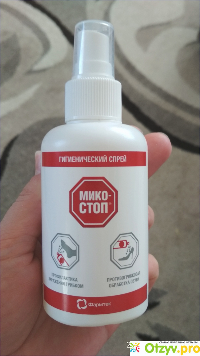 Этим спреем можно обрабатывать, как саму обувь, так и стопу. Спрем Мико-СТОП удобно пользоваться ребёнку. Мы сначалу обрабатывали и обувь и стопу. В обувь нужно брызнуть, буквально по одному разу и в ночь, чтобы высохла обувь. Сейчас сын брызгает на стопу, прям перед выходом на улицу, и одевает носок. Нас очень выручает спрей Мико-СТОП, однозначно советую.