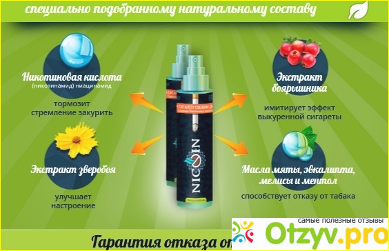 Nicoin это спрей от курения, который включает натуральные компоненты и сможет помочь не просто избавиться от зависимости от никотина, но и результат вы получите устойчивый, и соответственно, тяга к курению будет вообще отсутствовать.