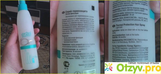 Спрей-термозащита Estel Professional мне посоветовала моя стилистка, он должен оберегать природный дар от горячего воздействия, да мне порядком надоело ощущать на своей голове липкий ком.