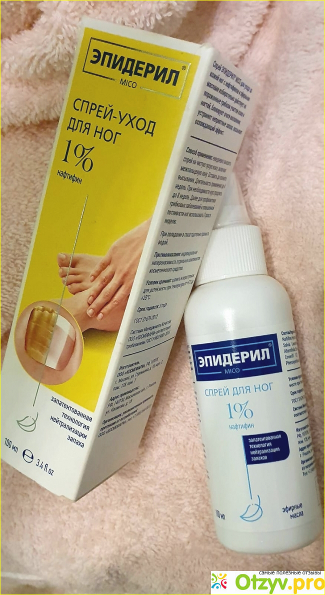 Врач посоветовал мне спрей-уход для ног Эпидерил Mico. В составе у средства Нафтифин 1% в качестве противогрибкового компонента. Также к составу относятся натуральные масла , которые обладают антибактериальными и противогрибковыми действиями. Хотелось бы ещё отметить, что это средство отлично нейтрализует неприятный запах.