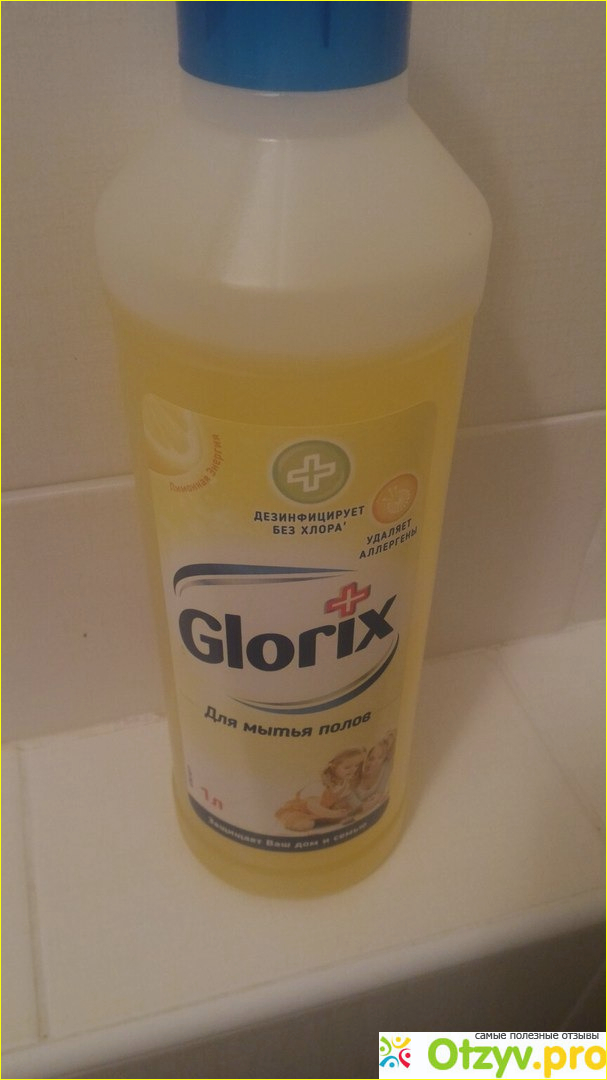 Мне нравится, что "Глорикс" имеет приятный, не химический аромат. Причем покупала я разные упаковки, аромат каждой был весьма не плохим. Благодаря этому после мытья полов дома пахнет свежестью. А это очень приятно.