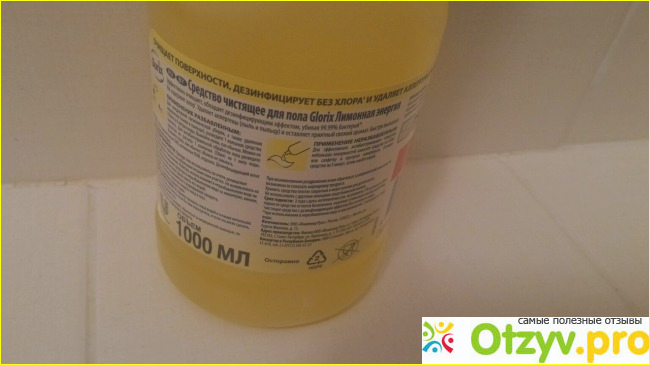 Где-то уже почти год я использую "Глорикс", мне он очень нравится. Первый раз увидела его в гипермаркете "Мэтро" по акции. Тогда один бутылек можно было приобрести чуть менее чем за 100 рублей. Цена меня привлекла, решила взять. Используется он стандартно. Набираете в ведро воду и наливаете туда одну крышку данной жидкости. Объем зависит от того каким количеством воды вы будете мыть пол.