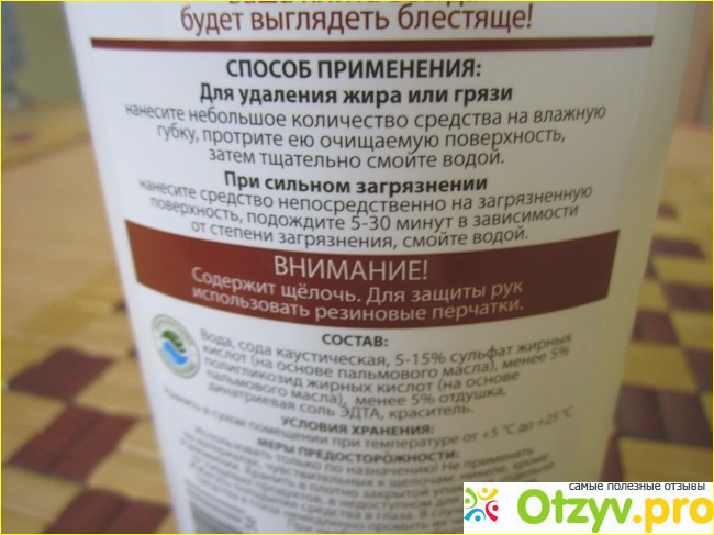 Продолжая разговор о средстве хочется отметить отсутвия вреда для кожи рук, никаких вредных химический и боже упаси радиактивных веществ там не наблюдается, при этом продуктивность на высоте, моется легко, смывается быстро, практически не оставляет никаких следов , размажитостей и разводов, рекомендую к покупке и постоянному, и регулярному использованию в быту, дома , в деревне, везде, где есть плита или духовка