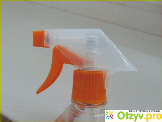 У средства хороший объем-500 мл. Имеется удобный распылитель с двумя режимами распыления-струей и спреем, и, конечно же, распылитель можно закрыть "на замок" для безопасной транспортировки и хранения.