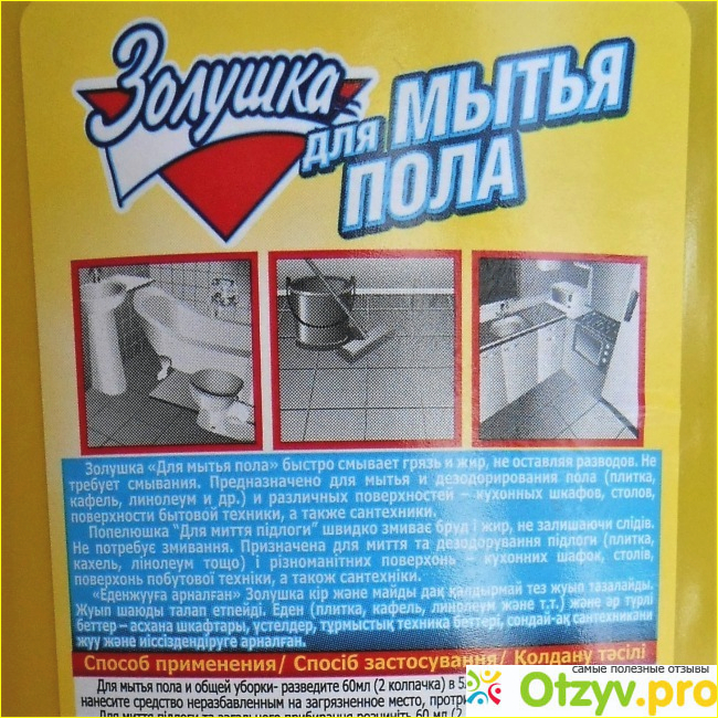 В ванной на кафельной плитке остается налет от брызг жесткой водопроводной воды, в прихожей, и особенно в общем с соседями коридоре, где проходимость большая, полы сильно загрязняются. С Золушкой уборка мне совершенно не в тягость. Вообще не нужно никаких усилий, чтобы смыть любые пятна, даже жирные, и удалить грязь.